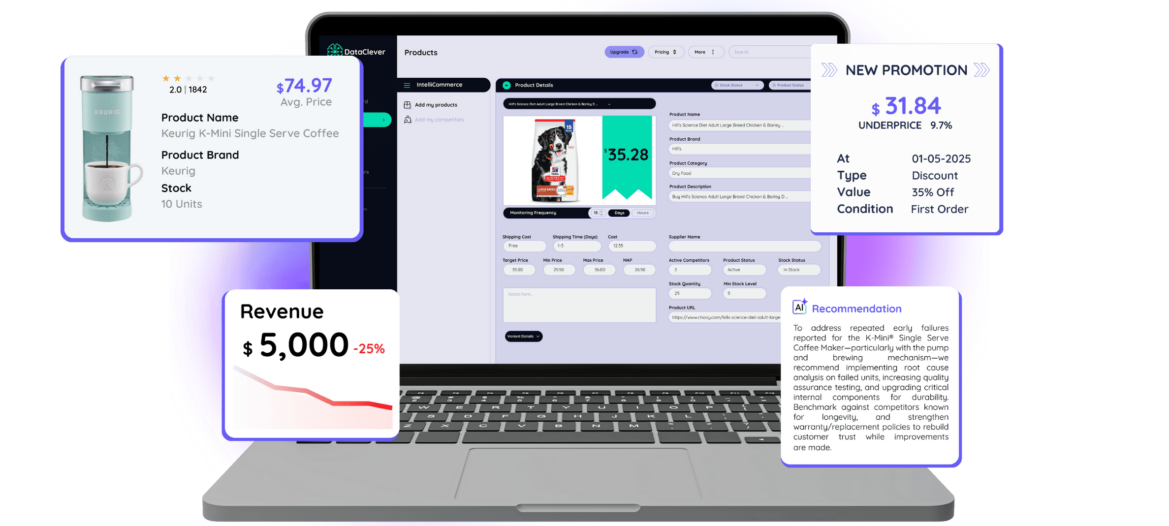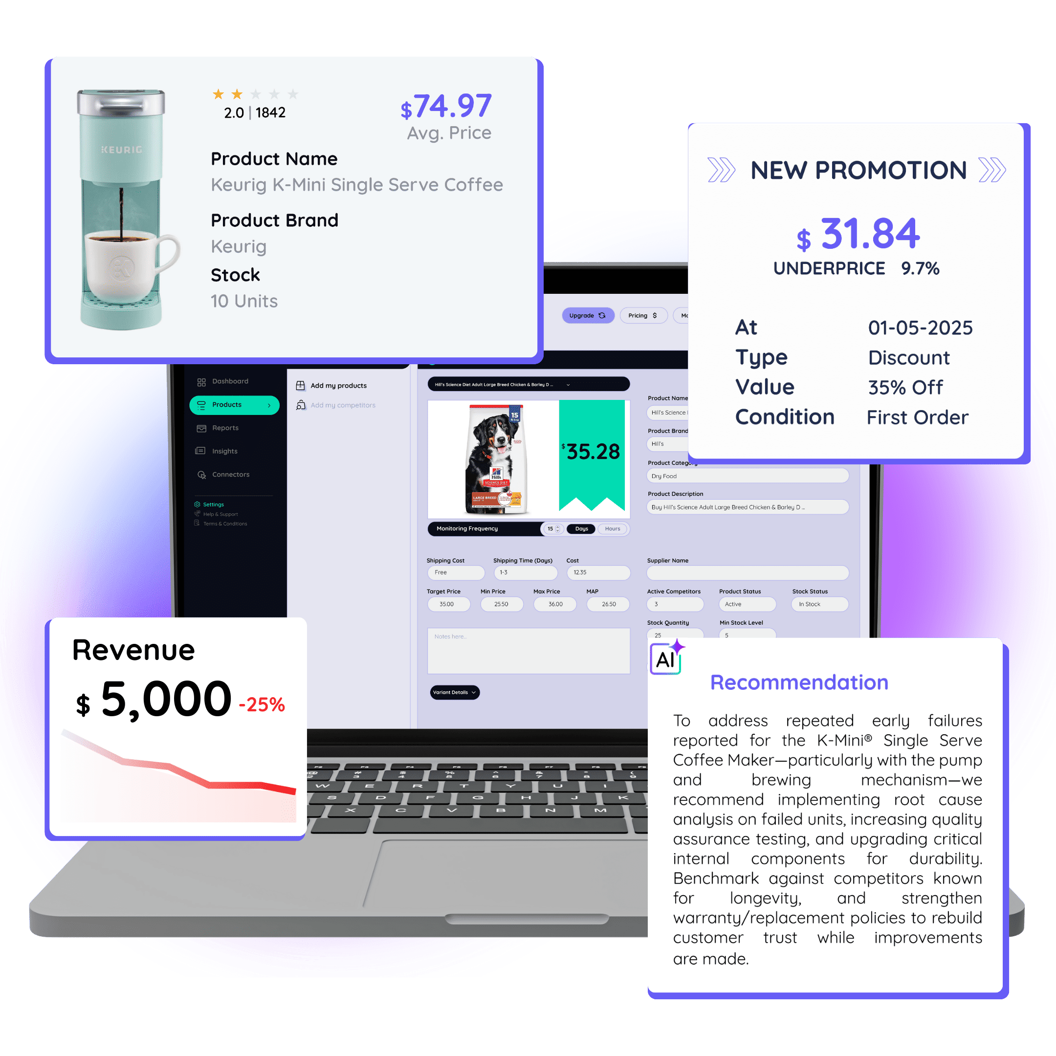 Monitors competitor discounts, bundles, and campaigns so you can adjust your offers, remain competitive, and maximize sales.